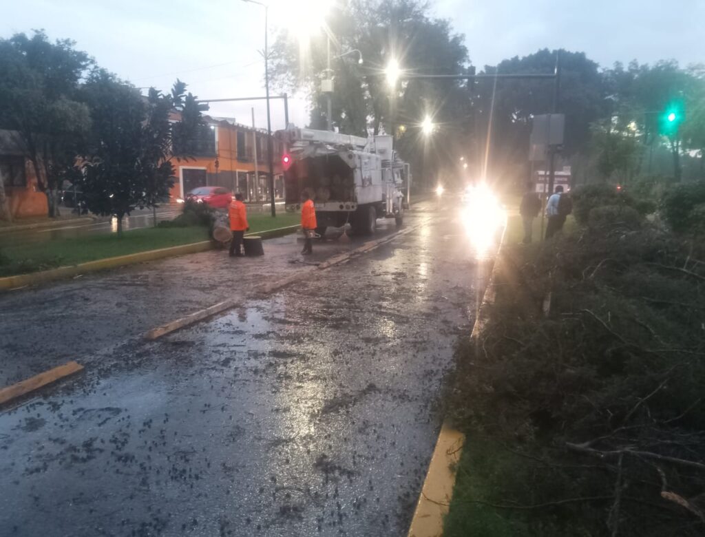 A través de la Secretaría de Servicios Públicos, mediante cuadrillas de la Dirección de Parques y Jardines, atendió de manera inmediata la caída de seis árboles en vialidades como la 55 Poniente y 11 A Sur, Bulevar 5 de Mayo y 17 Oriente, Diagonal Defensores y 22 Poniente, las afueras del Centro Escolar Niños Héroes de Chapultepec, y en la 31 Poniente y 8 Sur. En cada caso, se realizaron labores de corte, retiro de ramas, limpieza y recolección total del desecho vegetal, garantizando la seguridad de la ciudadanía, así como del personal y la libre circulación.