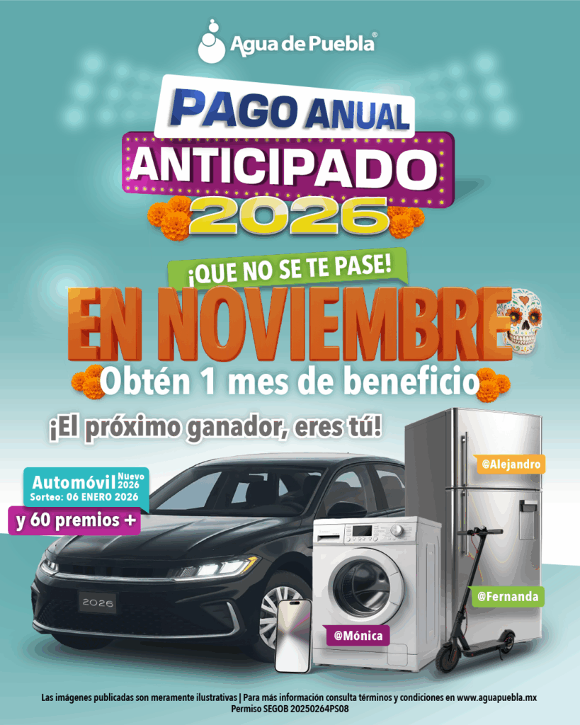 Agua de Puebla invita a todos los usuarios de uso doméstico a aprovechar el “Gran Fin de Ahorros” a partir del 10 al 31 de noviembre: