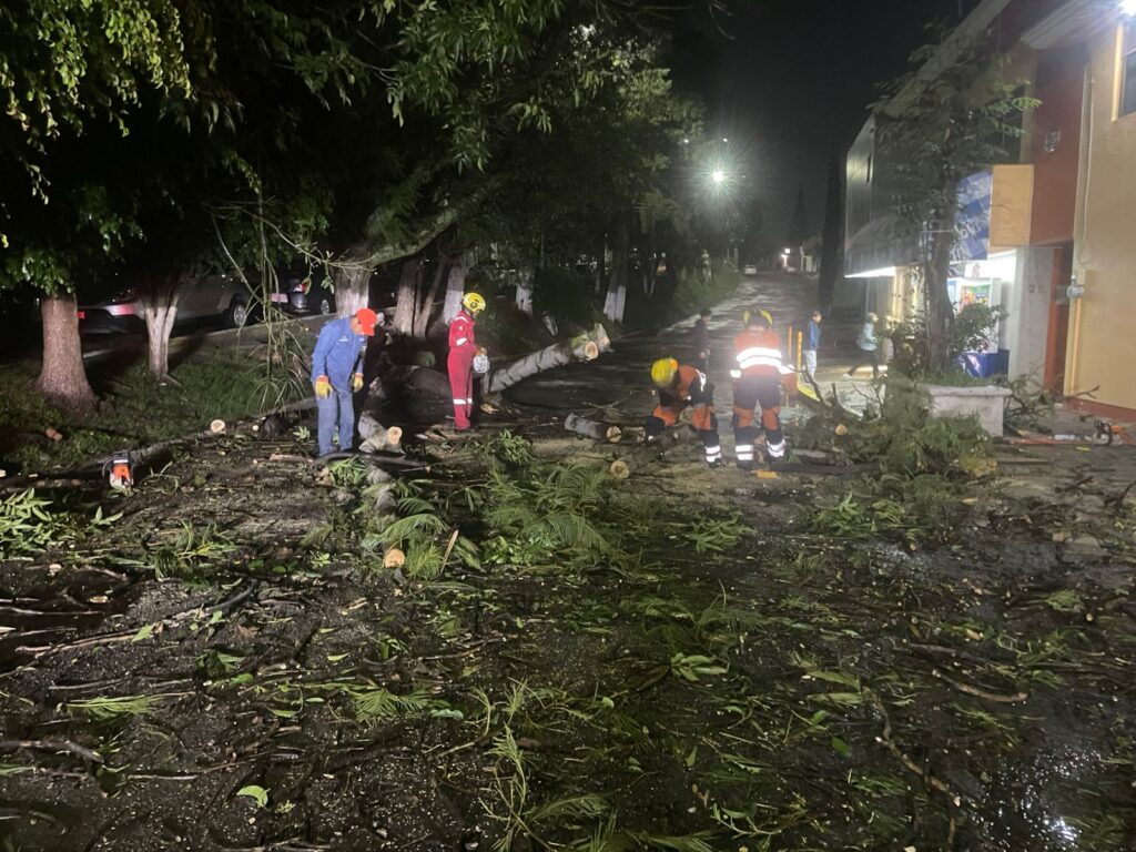 La Secretaría de Seguridad Ciudadana (SSC), a través de la Dirección de Protección Civil Municipal en coordinación con la Secretaría de Servicios Públicos con su área de Parques y Jardines, informan que, acudieron a la calle Santo Tomás esquina con Brocatel del Fraccionamiento Lomas del Mármol, donde debido a la lluvia registrada esta tarde-noche, se reportó la caída de un árbol, sin que hubiera lesionados.