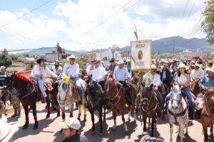Acompañado por autoridades del ayuntamiento y cabalgantes, partieron de la Iglesia del Honguito, para posteriormente recorrer las principales calles del municipio, donde el gobernador se mostró cercano con las y los habitantes, en un recorrido de más de cuatro kilómetros que concluyó en el zócalo.