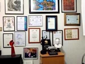 También con mucho orgullo, el Reconocimiento de nuestro ente Continental, la Federación Latinoamericana de Periodistas, FELAP, consistente en una réplica metálica artesanal de una máquina de escribir antigua, que recibimos en Buenos Aires, Argentina de nuestro presidente el camarada Juan Carlos Camaño este 5 de septiembre pasado en el marco de la Reunión del Comité Reducido de FELAP.