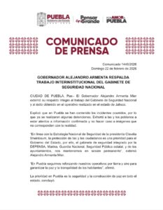 Gobernador Alejandro Armenta respalda trabajo interinstitucional del Gabinete de Seguridad Nacional