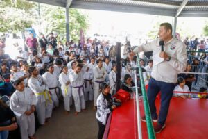 Subrayó que promueven el orden, respeto y aplicación de la ley desde actividades básicas como es el deporte, la cultura y el arte. «Un chico que práctica deporte se vuelve un agente de paz», afirmó el gobernador.