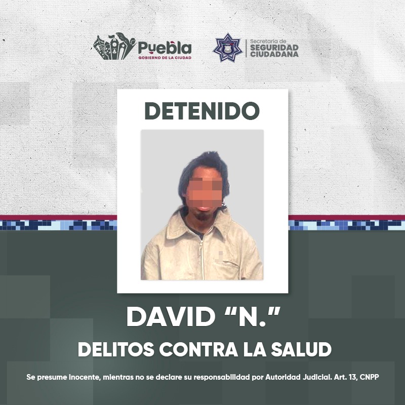 El Gobierno de la Ciudad que encabeza el presidente municipal Pepe Chedraui, a través de la Secretaría de Seguridad Ciudadana (SSC), informa la detención de David «N», al encontrarse cometiendo una falta administrativa y por tener en su posesión bolsas que contenían aparentemente droga conocida como marihuana; por lo que fue puesto a disposición de la autoridad ministerial.