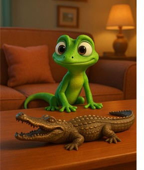 Yo soy la lagartija verde que vive detrás del sofá.