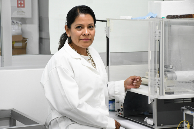 La académica trabaja en dos líneas de investigación paralelas, en las cuales se aprovecha el mismo polímero poli (ácido láctico) (PLA), un polímero biobasado y compostable. Una línea está enfocada en la remediación de agua por medio del diseño de membranas -con la técnica de electroespining- y dopadas con óxidos metálicos para ser utilizadas en la eliminación de contaminantes -colorantes utilizados por la industria textil, de fármacos y alimentos. La otra línea es el diseño de películas delgadas que puedan aplicarse en empaques de alimentos, con el fin de sustituir a los plásticos actuales.