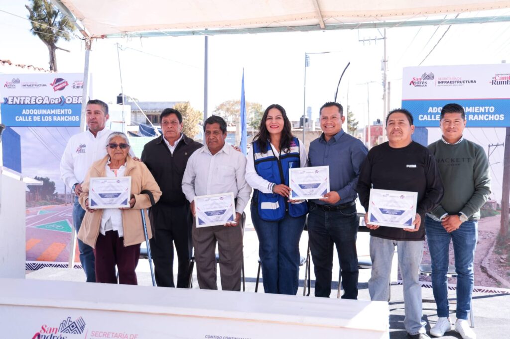 Con el objetivo de mejorar la movilidad y dignificar las condiciones de vida de las familias sanandreseñas, la presidenta Lupita Cuautle, realizó la entrega de la obra de adoquinamiento en la calle de los Ranchos, en la junta auxiliar de San Bernardino Tlaxcalancingo.