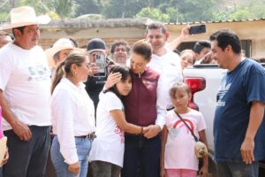 De forma directa, la mandataria dialogó con habitantes, voluntarios y autoridades locales, con las familias que enfrentan pérdidas materiales. Reiteró que el Gobierno de México trabaja de la mano con el estado para garantizar que cada apoyo, cada recurso y cada acción llegue donde más se necesita. «No se les va a dejar solos».