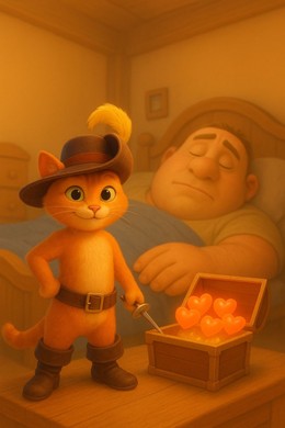 Un día, el gato con botas se escabulló en el castillo, encontró al gigante dormido y, aprovechando su suerte, lo derrotó de una sola patada, con el súper poder de sus botas. Rescató sus 6 vidas y regresó a San Lorenzo para vivir por muchísimo tiempo.