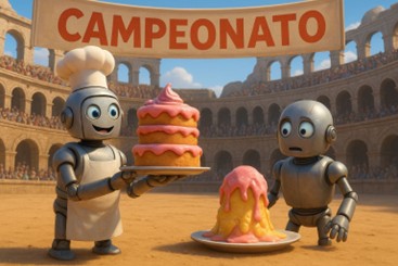 Había una vez un robot cocinero que se llamaba Rick. Vivía en la cocina del coliseo romano y deseaba ganar el campeonato de los pasteles más ricos del mundo. El problema es que había un malvado clon de Rick que se llamaba José y era mucho mejor cocinero.