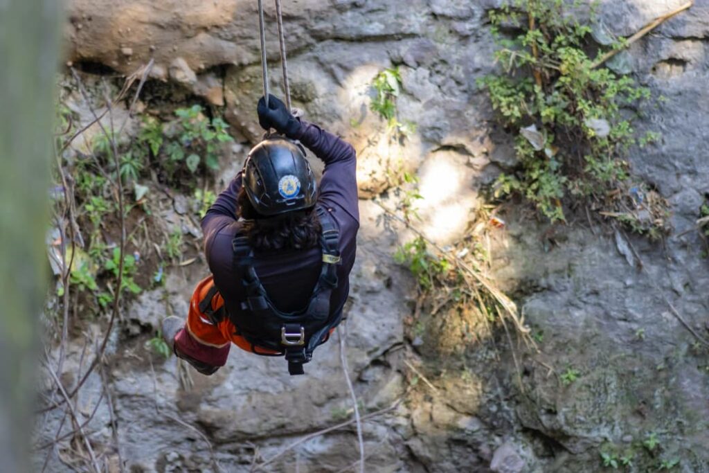 Durante la jornada, el personal recibió instrucción teórica y práctica en el uso adecuado de equipo de protección, aseguramiento, descenso y maniobras seguras, con el objetivo de prevenir accidentes y fortalecer la capacidad de respuesta ante situaciones de emergencia.