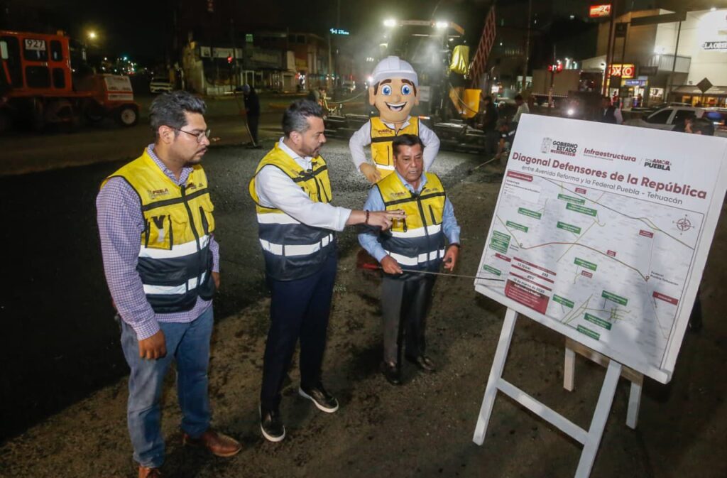 En representación del titular del Ejecutivo, el coordinador general de gabinete, José Luis García Parra, supervisó los trabajos junto con el secretario de Infraestructura, José Manuel Contreras de los Santos, donde destacó que este programa estatal contempla la intervención de 33 vialidades principales y más de 5 mil calles en todo el territorio poblano. Subrayó que, en esta etapa, la obra en la Diagonal Defensores abarca más de 13 kilómetros, desde la prolongación de la avenida Reforma hasta la carretera federal Puebla-Tehuacán, en beneficio directo de 50 colonias y más de 278 mil habitantes.