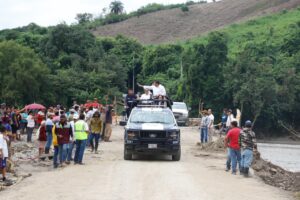 -En trabajo conjunto con la Secretaría de la Defensa Nacional, Marina y Guardia Nacional se abren caminos para habilitar los accesos a las comunidades.