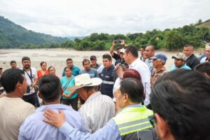“Nos queda claro que el muro es vital, también hay que dragar, tenemos maquinaria, con los impuestos de ustedes y el apoyo de la presidenta hemos comprado módulos de maquinaria y con ellos iniciaremos los trabajos”, afirmó el mandatario estatal durante una reunión con pobladores con el objetivo de escuchar de viva voz las necesidades ante la contingencia.