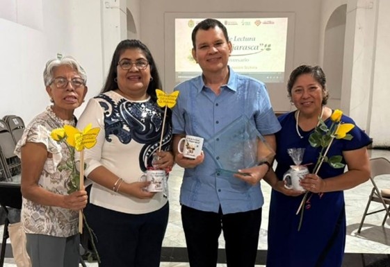 Fundadores del Club de Lectura “La Hojarasca”: Livia Carrasco Vigil, Ma. de Lourdes Rosas Palacios, Leonel Plaza Aldazaba y Darvelia Martínez Hernández.