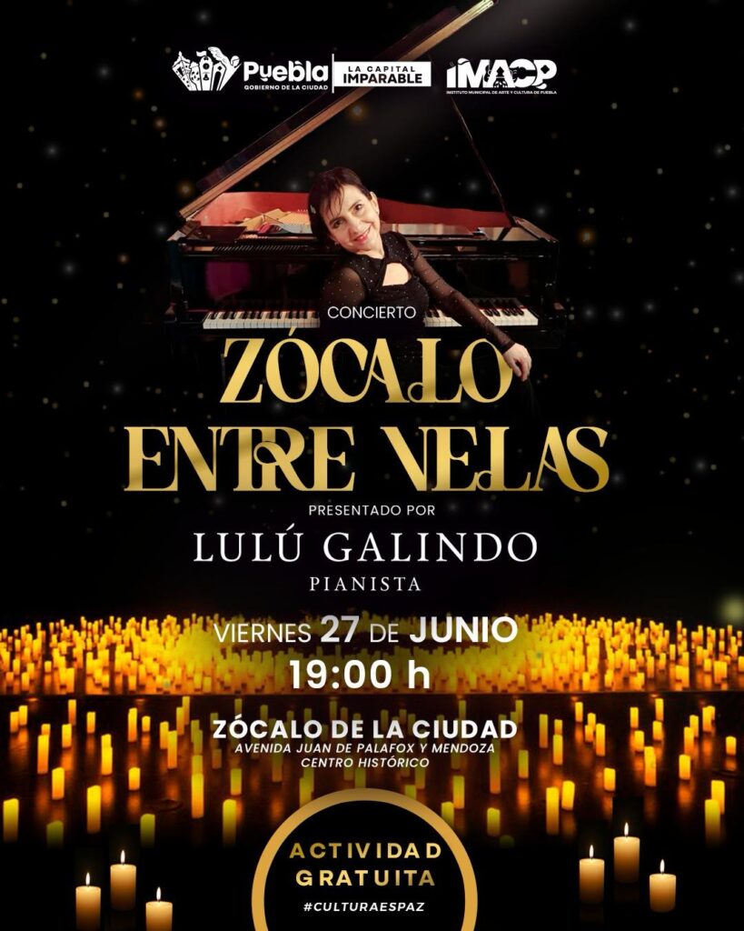 En esta ocasión, el corazón de la capital poblana se llenará de la música de la reconocida pianista Lulú Galindo, quien perfeccionó su técnica en Puebla, Nueva York, París y Austria. Su destacada trayectoria incluye presentaciones en importantes festivales como el Cervantino, Festival Puebla Ciudad Musical, Barroquísimo, Palafoxiano e Internacional de Puebla, entre otros.