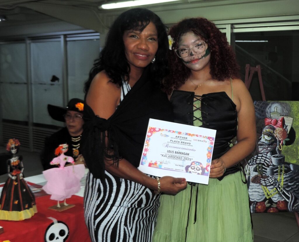Lolis Barragán recibe su Reconocimiento de participación en “Kalarochas” 2025 de manos de Maily Acosta.