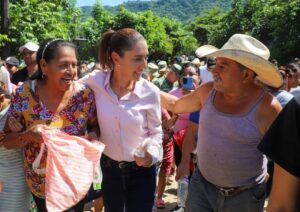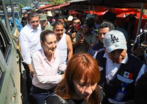 Desde este punto, la mandataria escuchó de primera mano a las familias damnificadas, constató personalmente las condiciones en que se encuentran las viviendas, caminos y carreteras y refrendó el compromiso del Gobierno de México para brindar atención oportuna y apoyo integral a quienes más lo necesitan.
