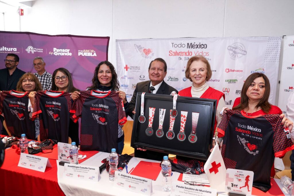 Con el objetivo de fortalecer la cultura de la prevención y promover la salud a través del deporte, se llevó a cabo la presentación de la playera y medalla de la 6ª Edición de la Carrera Nacional con Causa “Todo México Salvando Vidas 2025”, organizada por la Cruz Roja Mexicana en Puebla y que tendrá como sede el municipio de San Andrés Cholula.