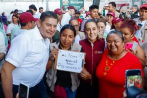 En tanto, Silvia Cortés, originaria del municipio de Tlacuilotepec, narró que la casa donde vivía con su hija, mamá y un tío se vino abajo totalmente, y que afortunadamente lograron salvar la vida. Reconoció y agradeció el apoyo de la presidenta y del gobernador: «Me parece bien que la doctora Claudia Sheinbaum se acuerde de las personas afectadas», enfatizó.