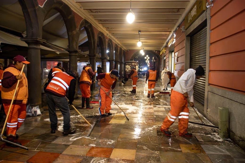 Puebla. Pue., 10 de abril de 2026.- Por instrucciones del presidente municipal, Pepe Chedraui, el Gobierno de la Ciudad, a través del Organismo Operador del Servicio de Limpia, realizó el lavado integral de los portales Hidalgo, Morelos e Iturbide, que rodean el Zócalo de Puebla, como parte de una estrategia para dignificar y realzar la imagen del corazón de la capital.