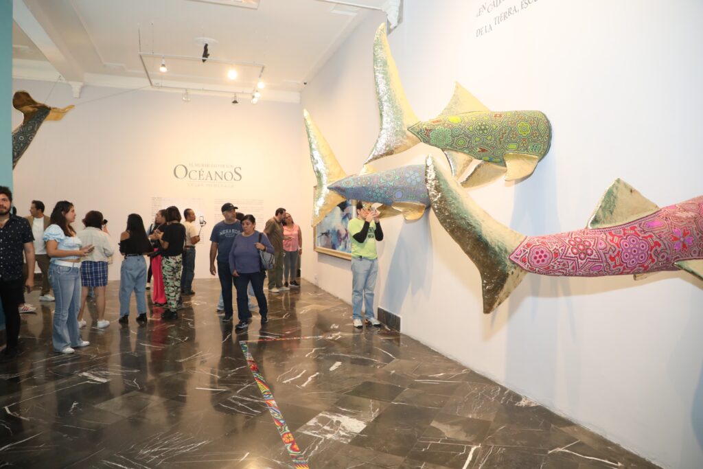 El presidente municipal, Pepe Chedraui, recorrió la exposición “El Murmullo de los Océanos” del artista César Menchaca, en la Galería del Palacio Municipal. Es una propuesta que combina el arte huichol con materiales reciclados para generar conciencia sobre la protección de los mares mexicanos.