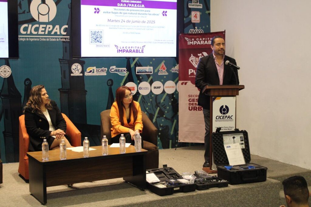 Esta iniciativa fue posible gracias al respaldo del Colegio de Ingenieros Civiles del Estado de Puebla (CICEPAC), presidido por Alejandro Muñoz Murallata, y de especialistas de la empresa ENGIE, quienes compartieron conocimientos técnicos y protocolos fundamentales para prevenir incidentes relacionados con la red de distribución de gas natural durante intervenciones en la vía pública.