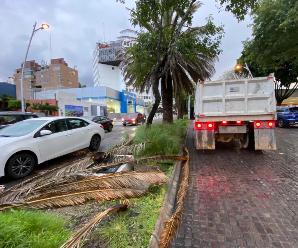 Personal de la dependencia realizó el retiro de ramas de una palmera que cayeron en la Avenida Juárez para evitar la obstrucción de las vialidades, así como garantizar la seguridad de todas y todos los transeúntes.