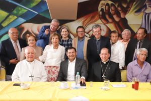 Después de una animada plática, ambos vuelven a tomar el micrófono. Después de las 6 de la tarde, el Arzobispo Espinosa Sánchez agradece nuevamente al Gobernador su presencia, repite que son amigos y recuerda que hace algún tiempo, con sus amigos periodistas prácticamente “destapó” a Armenta como el más indicado para ser el candidato al Gobierno y después ganador de la elección.
