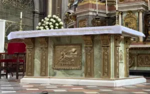 El Padre Manuel Fernando Sedano López, Doctor en Sagrada Liturgia y con Maestría en Arte y Arquitectura al Servicio de la Liturgia por el Pontificio Instituto Litúrgico de San Anselmo en Roma, explica que la necesidad de un nuevo altar surge de la reforma y fomento litúrgico propuesto por el Concilio Vaticano II, que planteó una nueva teología litúrgica, que está en función de la comunión y la participación de los fieles.