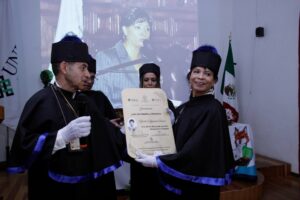 Finalmente, la Regidora de Puebla Capital, Bertha María de Lourdes Villavicencio Ramos, recibió el reconocimiento Honoris Causa otorgado por el Claustro Latinoamericano Juan de Palafox y Mendoza, por su destacada trayectoria académica, social y política, caracterizada por una vida dedicada a la defensa de la educación pública y la justicia social.